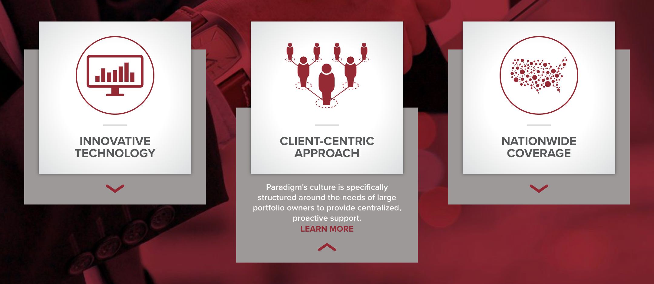 These particular callout boxes feature a hover animation that reveals a more detailed description and removes the tint from the background image when you hover over it.